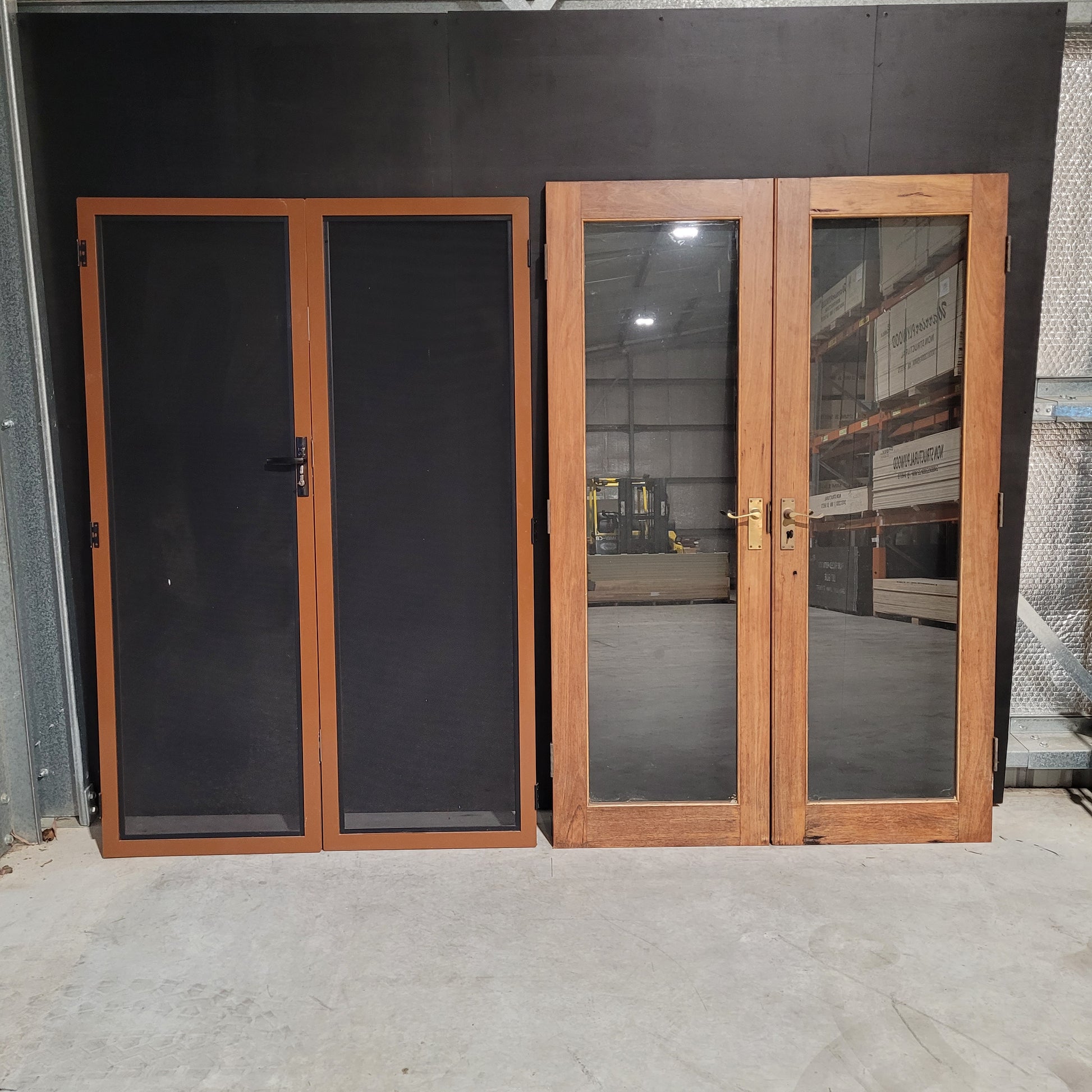 French Door - 2 x 2000h x 675w Solid Core w/ 1 x Clear Glass + Security Screens *2nd Hand* 10547