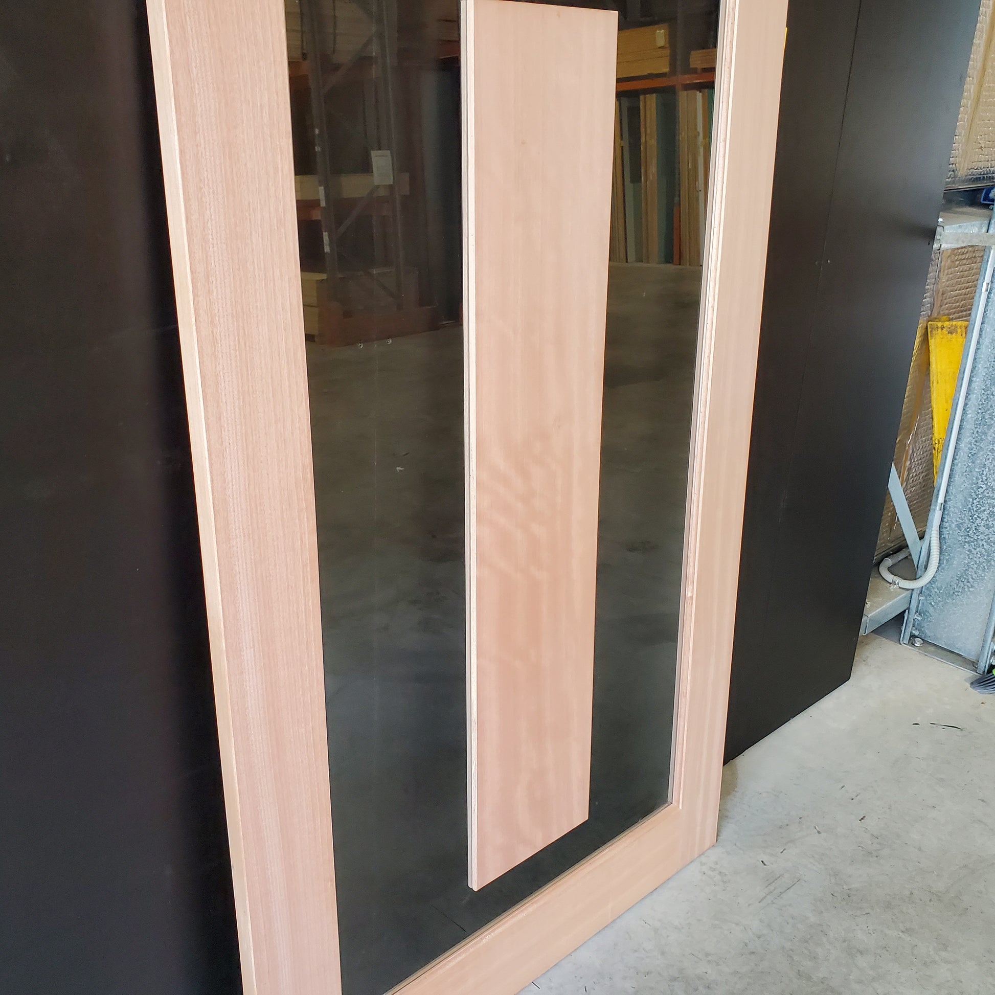 Timber Entry Door - 2040h x 1200w Solid Core w/ Floating Timber Panel Clear Glass *New* 40048