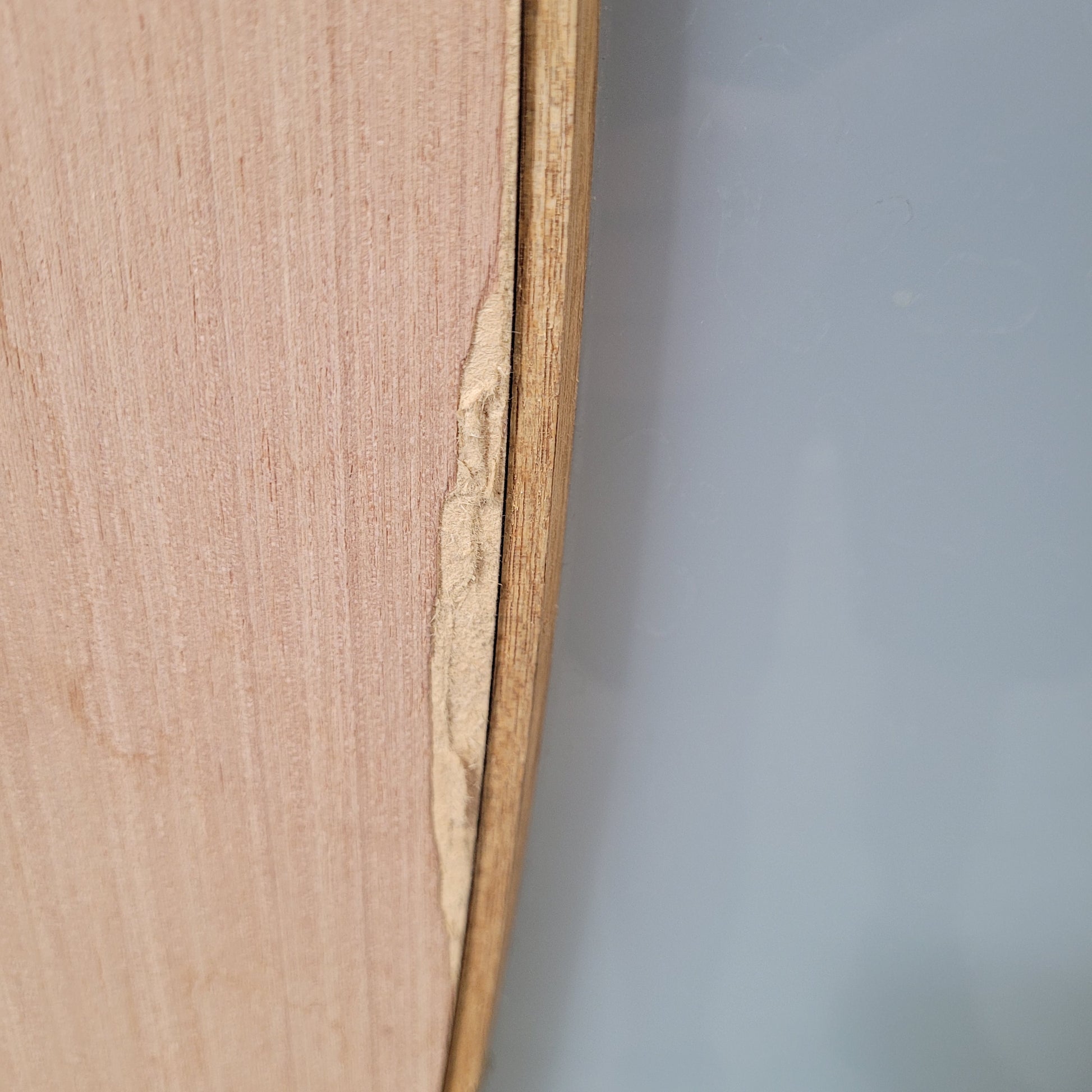CONDITION SPECIFICS: The condition of this door is a 5/10. There are numerous condition issues with this door. It is slightly bowed. It has a number of water stains on the timber veneer. The timber veneer also has damage in some areas. The door has a glazing issue, where the glass hasn't been seated / positioned correctly. This has resulted in a very slight gap between the edge of the glass and the cut out in the door. Because of this, this door is not suitable for direct weather exposure and must be used in a protected (undercover) situation. Please refer to the additional photos.