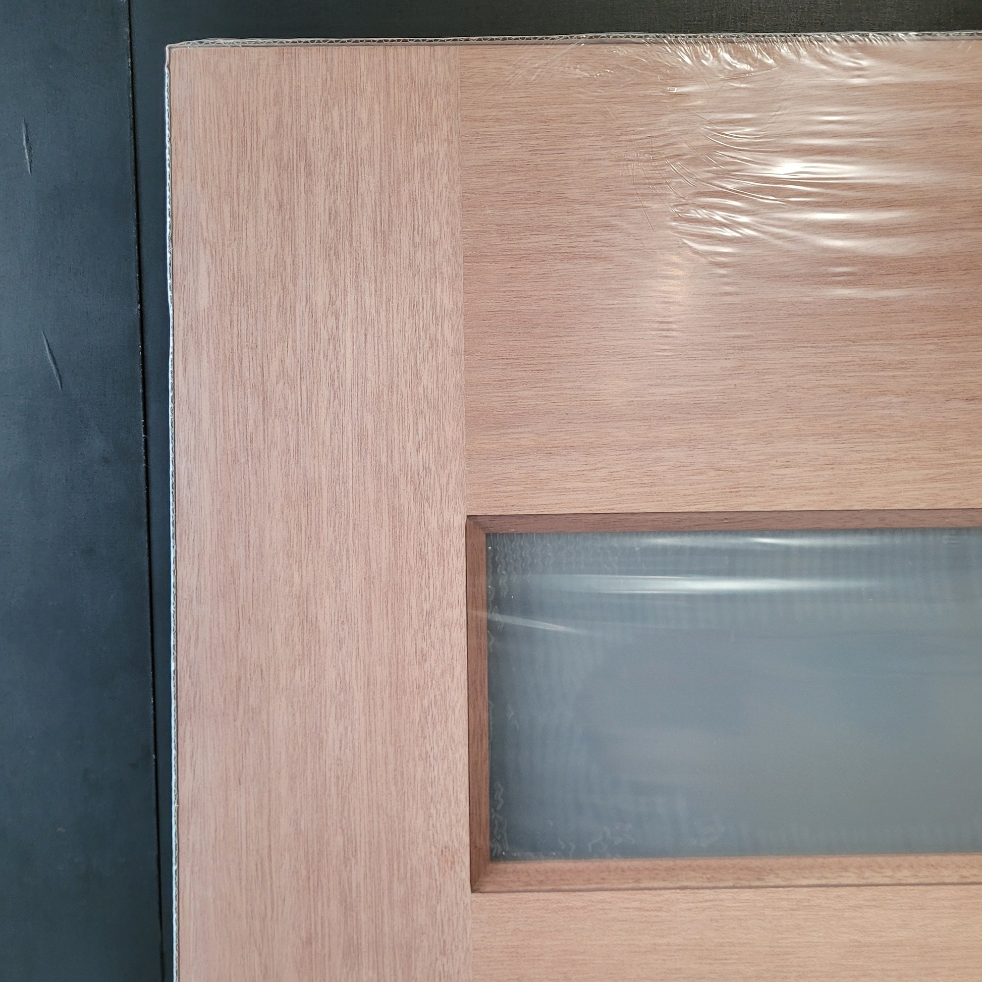 Timber Entry Door - 2040h x 820w Solid Core w/ 5 x Horizontal Obscure (Frosted) Glass *New* 40020