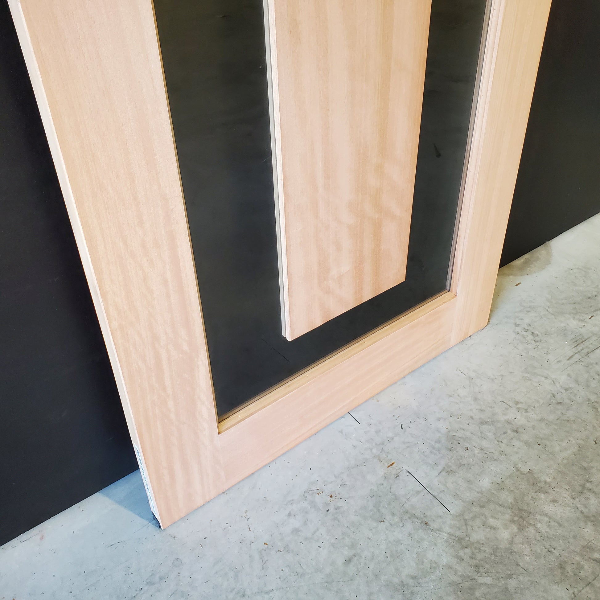 Timber Entry Door - 2040h x 920w Solid Core w/ Floating Timber Panel Clear Glass *New* 40045