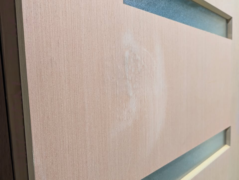 CONDITION SPECIFICS: The condition of this door is 9/10. There is an imperfection in the laminate. Repaired, and still stuck down, but visible on exterior side of door. See photos for details.