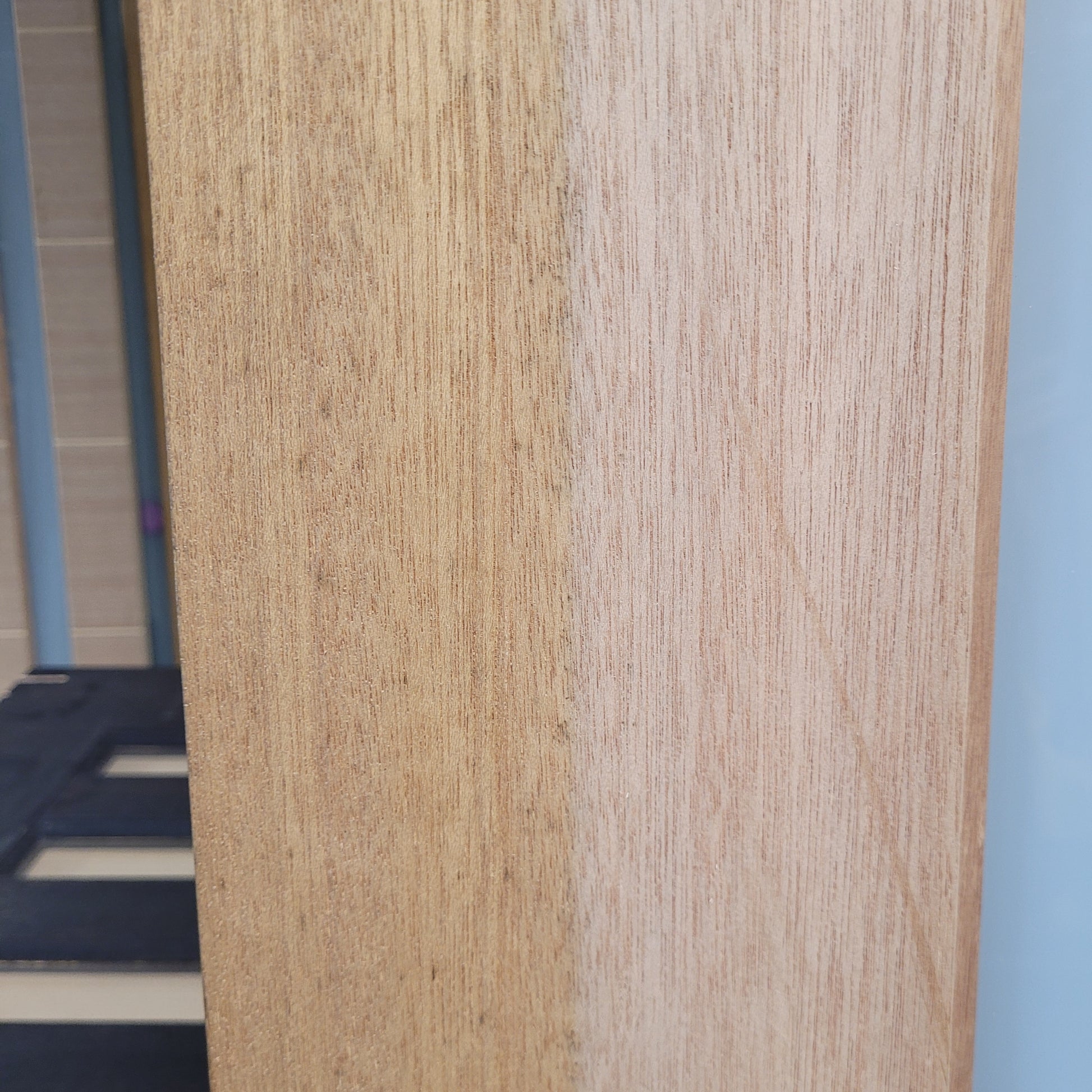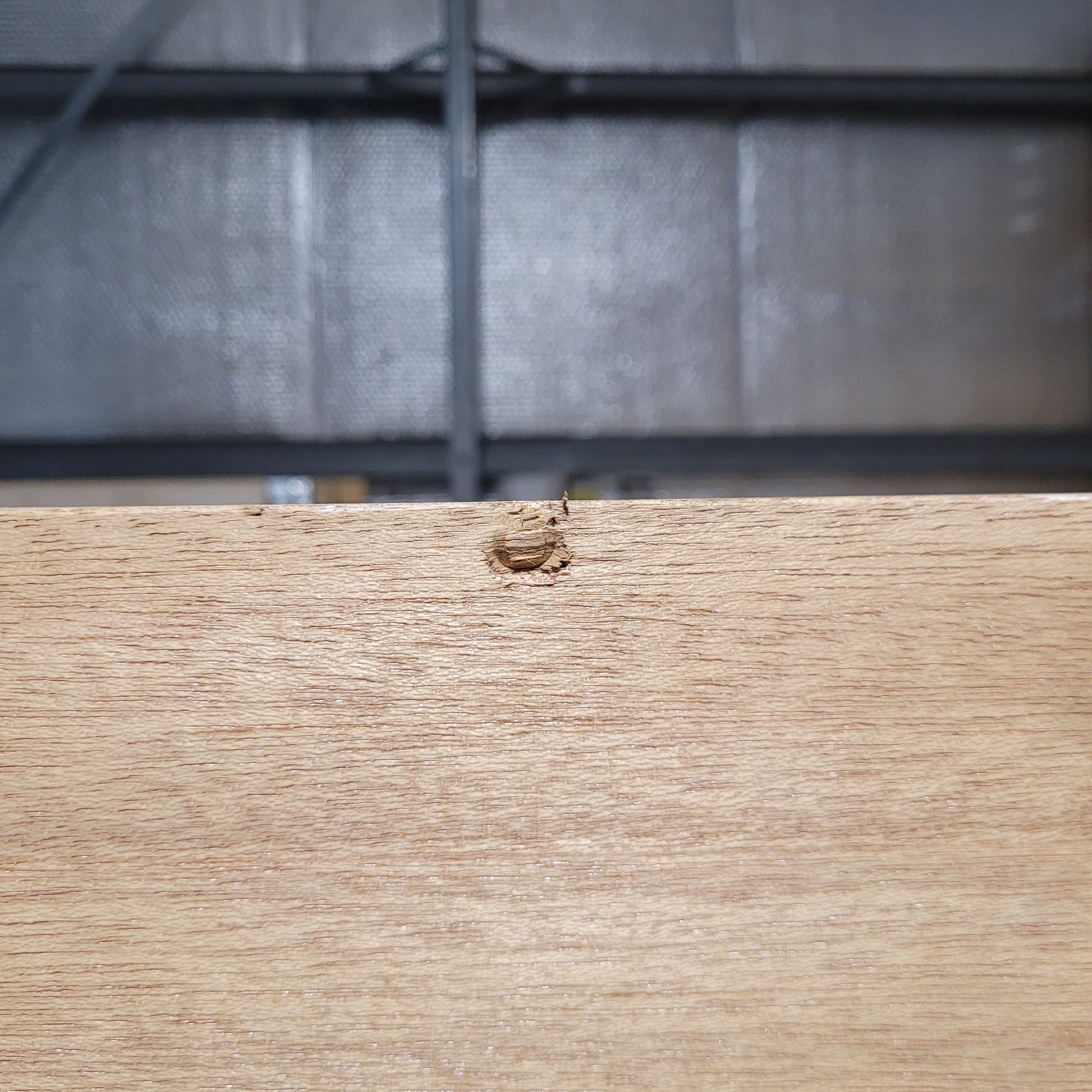 CONDITION SPECIFICS: The condition of this door is an 8/10. There is some staining on the timber veneer finish (this looks like there was a smaller door on top of this one when it was in a pack, and the edges have been discoloured by the sun). A light sand will improve this discolouration, but probably won't completely get rid of this. There is also some slight damage to the timber veneer at the top of the door. And lastly, there are hinge rebates down one edge (it has been set up, when viewed from the outside, looking in, for the hinges to be on the left hand side of the door and for it to swing open to the interior of the building). Apart from that, this door is in good condition.
