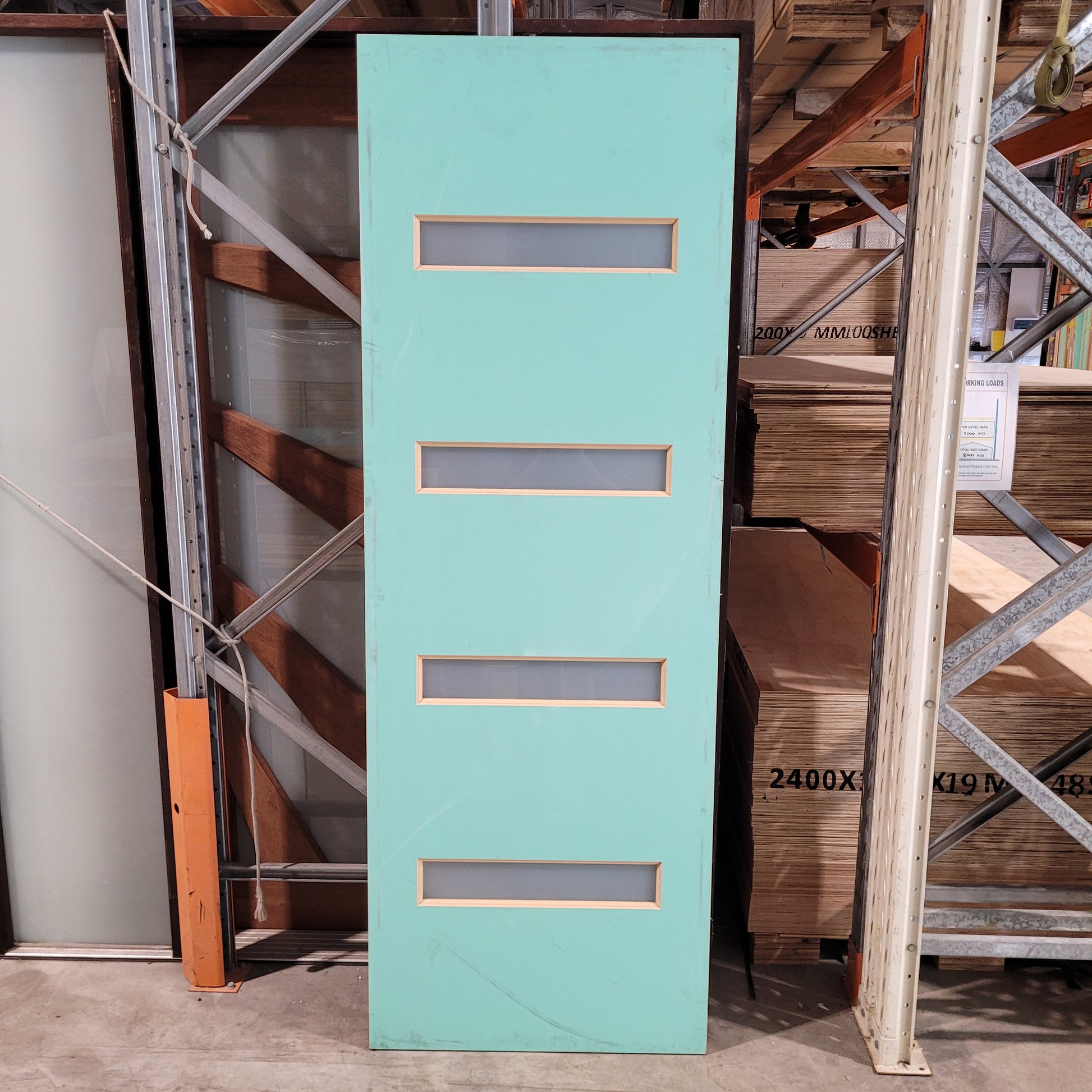 Timber Entry Door - 2340h x 820w Solid Core w/ 4 x Obscure Glass *Factory 2nd* 10390