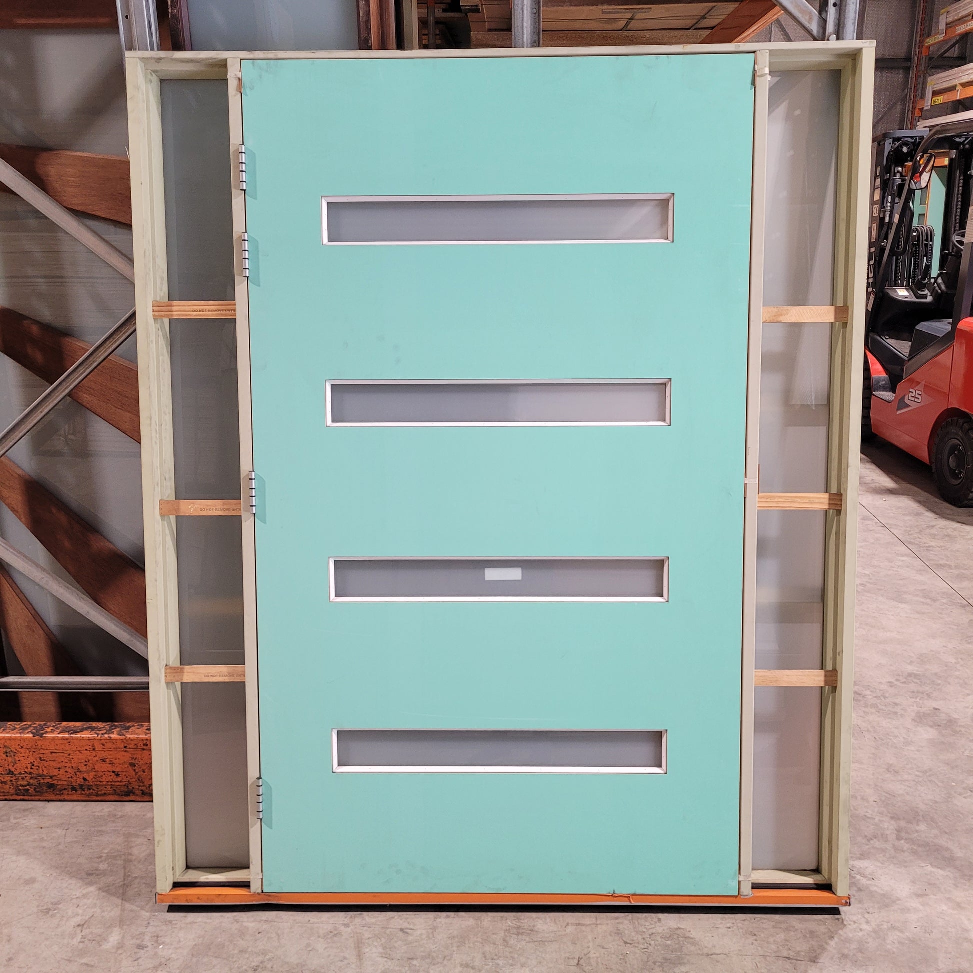 Timber Entry Door - Pre-Hung in a 2095h x 1750w Frame w/ 4 x Obscure Glass *Factory 2nd* 10509