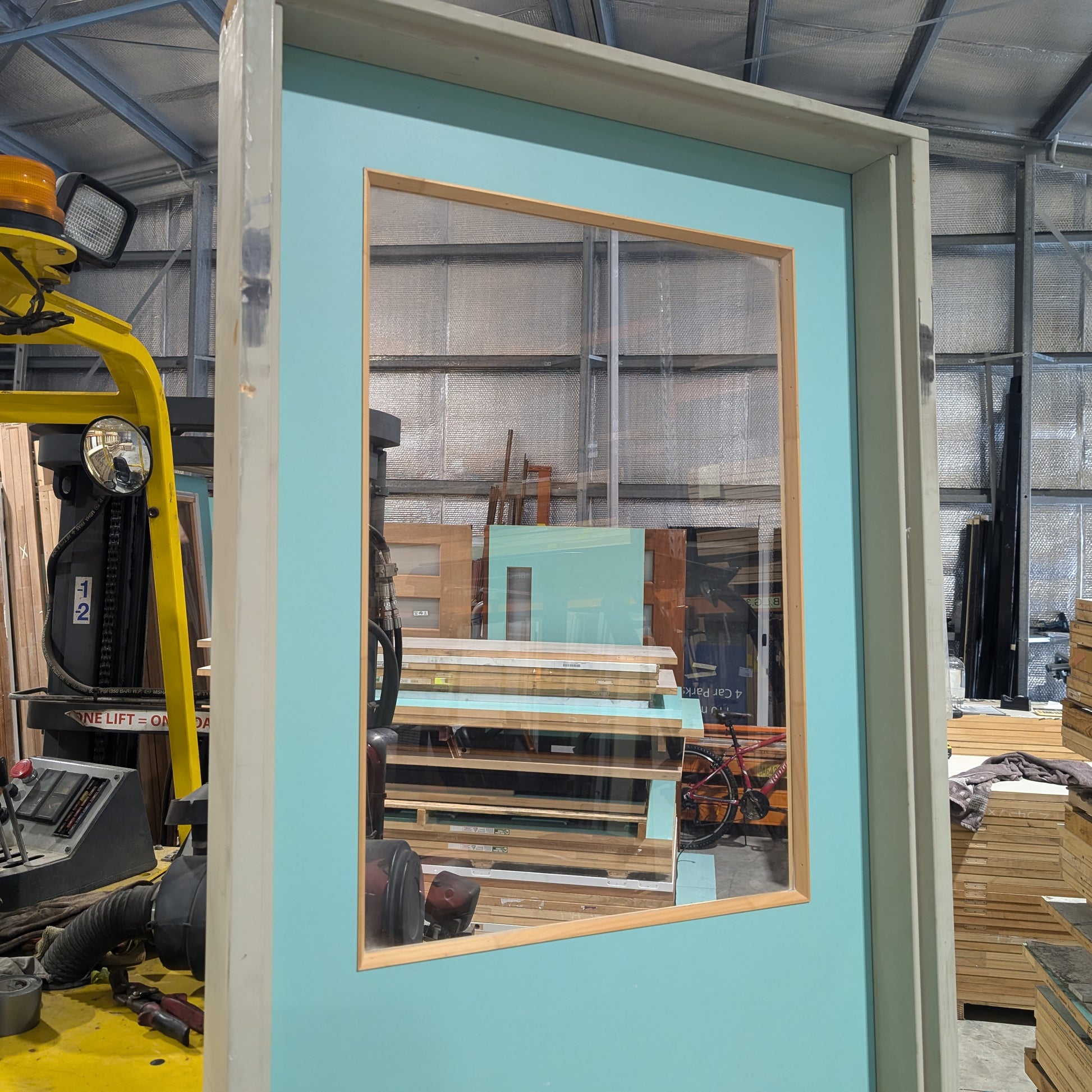 Timber Entry Door Pre-Hung In Frame - 2410h x 837w Hollow Core w/ 1 x Glass *Factory Second* 30285